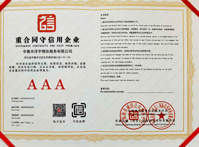 | 企業(yè)信用評價(jià)AAA級信用企業(yè) |